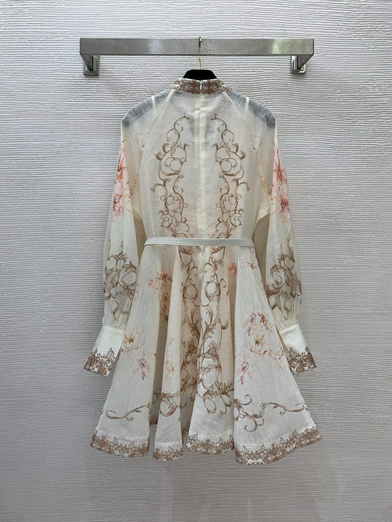 Autumn Flower Print Dresses, Fashion Beach Dress, Long Sleeve, Elegant Dress for Women, Romantic Party Dress,Belt Evening Outfit